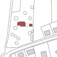 entstehen. Der langgestreckte Baukörper ist von der Straße leicht zurückgesetzt auf dem Gartengrundstück plaziert und | ||||||